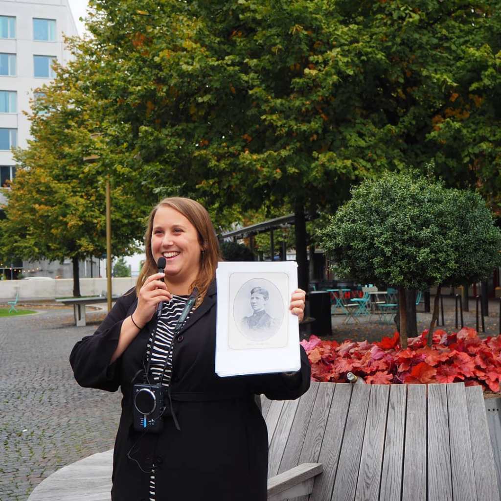 Sommaren 2020 lanserade Camilla Bergvall stadsvandringar i Nanny Palmkvists fotspår genom centrala Helsingborg. Du får höra om hennes idéer om skolan, cykling, fred och feminism, bland annat. Boka en egen vandring till bokcirkeln, vännerna eller för att fira någons födelsedag. Stadsvandringen har sju stopp och varar i ungefär en timme. Röstförstärkare används om det är en större grupp eller önskas.